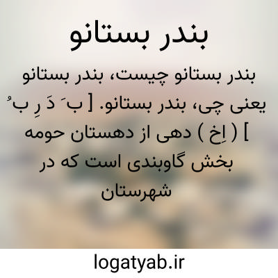 بندر بستانو. [ ب َ دَ رِ ب ُ ] ( اِخ ) دهی از دهستان حومه بخش گاوبندی است که در شهرستان لار واقع است. 369 تن سکنه دارد. ( از فرهنگ جغرافیائی ایران ج 7 ).