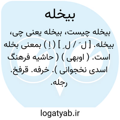 بیخله. [ ل َ / ل ِ ] ( اِ ) بمعنی بخله است. ( اوبهی ) ( حاشیه فرهنگ اسدی نخجوانی ). خرفه. قرفخ. رجله. بقلةالحمقاء. مویز. آب محله. تخمگان. پرپهن. ( حاشیه فرهنگ اسدی ) ( یادداشت بخط مرحوم دهخدا ). رجوع به خرفه و پرپهن شود.