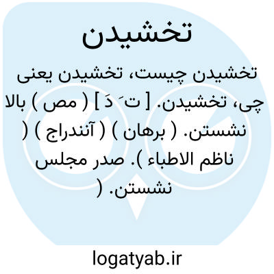 تخشیدن. [ ت َ دَ ] ( مص ) بالا نشستن. ( برهان ) ( آنندراج ) ( ناظم الاطباء ). صدر مجلس نشستن. ( ناظم الاطباء ). قیاس شود با: پارسی باستان «همتخشی »، «همتخشتا»، ریشه اوستائی «ثوخش »، «ثوخش َ»، غیور، باهمت، «ثوخشه »، «ثوخشیشت َ»، پهلوی «توخشیتن »، هندی باستانی «تواکشس »، قوه، نیرو. ( حاشیه برهان چ معین ). تخشید، یعنی بالا نشست، چه تخش بمعنی بالا و صدر مجلس هم آمده است. ( برهان ). کسی که بالا نشست گویند تخشید. ( فرهنگ رشیدی ). || آقای دکتر معین در مزدیسنا و تأثیر آن در ادبیات پارسی ذیل کلمه «هوتخش » آرد: هوتخش مرکبست از دو جزء، جزء اول بمعنی خوبست و جزء دوم از توخشیتن، تخشیدن بمعنی کوشیدن و ورزیدن است. هوتخش یعنی خوب ورزنده، نیکو کوشنده و مراد از آن طبقه صنعتگر است... ( مزدیسنا و تأثیر آن در ادبیات پارسی ص 408 ). و رجوع به تخشا و تخشائی ارتش شود.