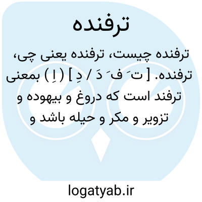 ترفنده. [ ت َ ف َ دَ / دِ ] ( اِ ) بمعنی ترفند است که دروغ و بیهوده و تزویر و مکر و حیله باشد و به این معنی بجای حرف ثالث، قاف هم بنظر آمده است. ( برهان ).بیهوده باشد. ( اوبهی ). همان ترفند مذکور. ( شرفنامه ٔمنیری ) ( ناظم الاطباء ). و رجوع به ترفند و ترقند و ترکند و ترکنده شود. || بمعنی ترس و بیم هم هست. ( برهان ) ( ناظم الاطباء ) ( از شرفنامه منیری ).