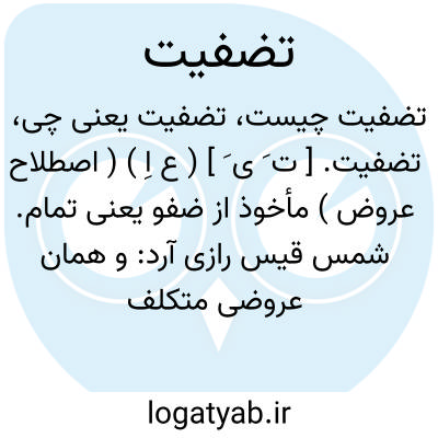 تضفیت. [ ت َ ی َ ] ( ع اِ ) ( اصطلاح عروض ) مأخوذ از ضفو یعنی تمام. شمس قیس رازی آرد: و همان عروضی متکلف بجای فاع، متحرکی و دو ساکن بر فاعلاتن افزوده است وآن را فاعلییاتان کرده و این تغییر را تضفیت نام نهاده و اصل آن ضفو است به ضاد معجمه و گویند درع ضاف یعنی زرهی تمام و این متکلف از این فعل بناء تفعیلی بکرده است... ( المعجم فی معاییر اشعارالعجم ص 39 ).