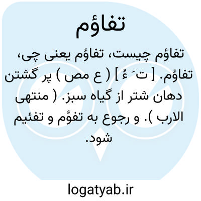 تفاؤم. [ ت َ ءُ ] ( ع مص ) پر گشتن دهان شتر از گیاه سبز. ( منتهی الارب ). و رجوع به تفؤم و تفئیم شود.