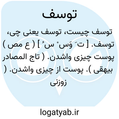 توسف. [ ت َ وَس ْ س ُ ] ( ع مص ) پوست چیزی واشدن. ( تاج المصادر بیهقی ). پوست از چیزی واشدن. ( زوزنی ). پوست از سر ریش بازشدن. ( منتهی الارب ) ( ناظم الاطباء ) ( آنندراج ). تقشقش و تقشر پوست. ( از اقرب الموارد ). || وسف پیدا شدن در شتر، یا در فراخی رسیدن شتر و فربه گردیدن آن. || افتادن پشم کهنه و برآمدن پشم نو. ( منتهی الارب ) ( آنندراج ) ( ناظم الاطباء ) ( از اقرب الموارد ).