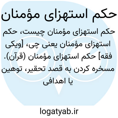 [ویکی فقه] حکم استهزای مؤمنان (قرآن). مسخره کردن به قصد تحقیر، توهین یا اهدافی دیگر را استهزاء گویند، آیاتی که در قرآن سخن از استهزا به میان آورده بیشتر مربوط به حوزه عقیده و دین بوده که در آن، جبهه مخالفِ انبیای الهی، مؤمنان، وحی، آیات الهی،... و حتی خداوند را به تمسخر گرفته و از استهزا به صورت حربه ای برای رویارویی با دین الهی بهره می جستند.