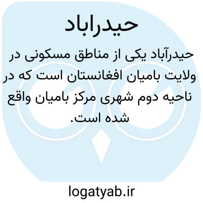 حیدرآباد (افغانستان). حیدرآباد یک منطقهٔ مسکونی در افغانستان است که در ولایت بامیان واقع شده است. قریه حیدر آباد در ناحیه دوم شهری مرکز بامیان واقع است؛ این قریه در دفتر ثبت احوال نفوس ولایت بامیان به نام سیدآباد ثبت است. تذکره ساکنان آن به نام قریه سیدآباد می باشد. قریه حیدر آباد حدود ۵۰۰ خانوار را در خود جای داده است. ساکنان این قریه تماماً قوم هزاره می باشند.