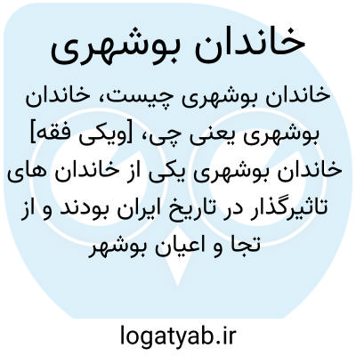 [ویکی فقه] خاندان بوشهری یکی از خاندان های تاثیرگذار در تاریخ ایران بودند و از تجا و اعیان بوشهر محسوب می شدند.