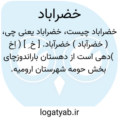 ( خضرآباد ) خضرآباد. [ خ ِ ] ( اِخ )دهی است از دهستان باراندوزچای بخش حومه شهرستان ارومیه. واقع در 32هزارگزی جنوب خاور ارومیه و دوهزاروپانصدگزی شمال شوسه ارومیه به مهاباد. این دهکده در جلگه قرار دارد با 198 تن سکنه. آب آن از درین قلعه و محصول آنجا غلات، برنج، توتون، چغندر، انگور و حبوبات. و شغل اهالی زراعت و صنایع دستی جوراب بافی و راه آن ارابه رو است. ( از فرهنگ جغرافیایی ایران ج 4 ).