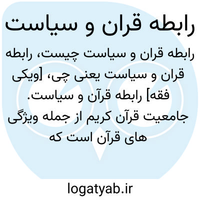 [ویکی فقه] رابطه قرآن و سیاست. جامعیت قرآن کریم از جمله ویژگی های قرآن است که مورد قبول همگان است. در قرآن کریم از مباحث و موضوعات مختلفی بحث شده است که نشان از گستردگی و عمق والای معارف آن است. یکی از مباحثی که در قرآن کریم به آن اهمیت خاصی داده شده مباحث سیاسی است.