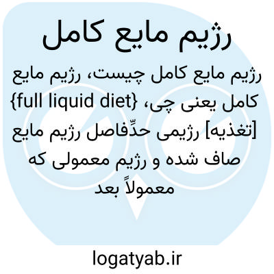 {full liquid diet} [تغذیه] رژیمی حدِّفاصل رژیم مایع صاف شده و رژیم معمولی که معمولاً بعد از عمل جراحی به منظور آماده شدن دستگاه گوارش برای فعالیت طبیعی تجویز می شود