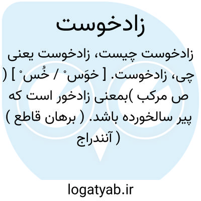 زادخوست. [ خوَس ْ / خُس ْ ] ( ص مرکب )بمعنی زادخور است که پیر سالخورده باشد. ( برهان قاطع ) ( آنندراج ). || شخصی که چیزی کم خورد و ضعیف و نحیف باشد. ( برهان قاطع ) ( آنندراج ). || کودکی که از بیماری کلان نگردد؛ الائتنان. ( منتهی الارب در ماده ت ن ن ). قصیع. کلانسال خرد؛ الشباب. ( السامی فی الاسامی ). طفلی که نمو او کم است و مبتلا به لاغری و نقصان قوه نامیه باشد. || شخصی که هر چه دارد صرف کند. ( برهان قاطع ) ( آنندراج ).