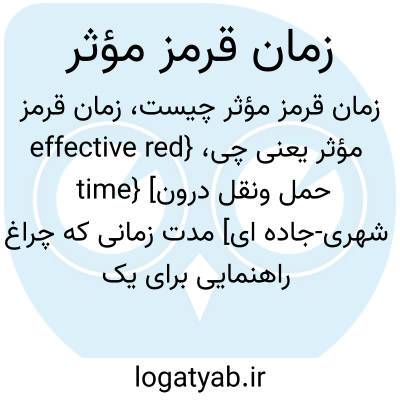 {effective red time} [حمل ونقل درون شهری-جاده ای] مدت زمانی که چراغ راهنمایی برای یک حرکت خاص یا جمعی از حرکات به رنگ قرمز است که اندازۀ آن برابر با مدت چرخه منهای زمان سبز مؤثر است
