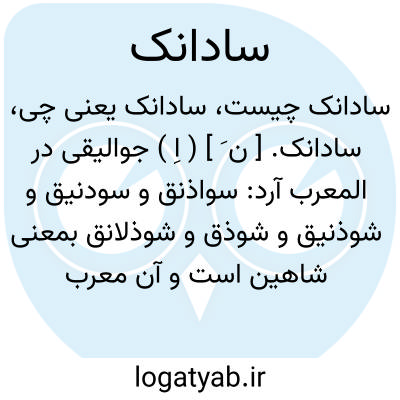 سادانک. [ ن َ ] ( اِ ) جوالیقی در المعرب آرد: سواذنق و سودنیق و شوذنیق و شوذق و شوذلانق بمعنی شاهین است و آن معرب سادانک فارسی است یعنی نصف درهم و تصور میکنم که مراد این است که بهای آن نیم در هم است یا آن نصف باز است. ( المعرب چ مصر ص 187 ). ارجح آن است که این کلمه فارسی نیست و یونانی است. ( حاشیه المعرب ).