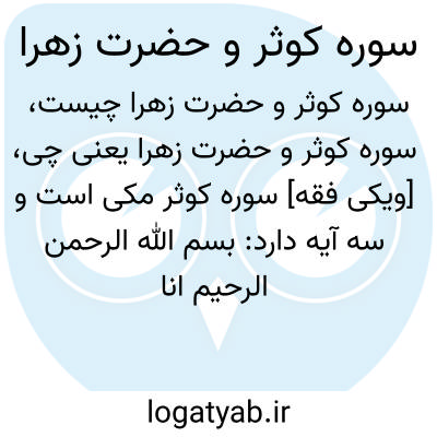 به نام الله که به نیک و بد بخشنده، و به نیکان مهربان است. محققا ما به تو خیر کثیر (فاطمه ع) دادیم (۳).پس به شکرانه اش برای پروردگارت نماز بخوان و قربانی کن (۲).وبدان که محققا شماتت گوی و دشمن تو ابتر و بلا عقب است (۳).