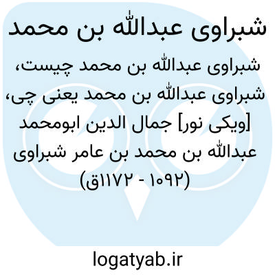 [ویکی نور] جمال الدین ابومحمد عبدالله بن محمد بن عامر شبراوی (1092 - 1172ق) از فقها و اصولیون مذهب شافعی و مورخ، محدث و ادیب و شاعر بود.