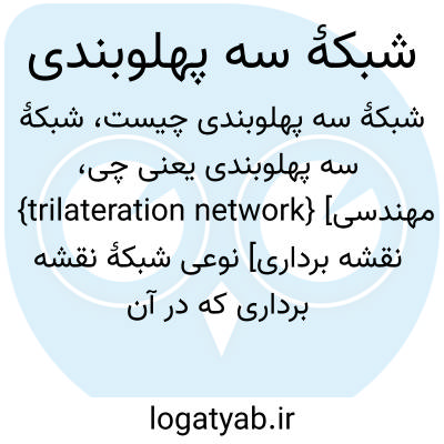 {trilateration network} [مهندسی نقشه برداری] نوعی شبکۀ نقشه برداری که در آن نقاط نقشه برداری با روش سه پهلوبندی تعیین موقعیت شده اند