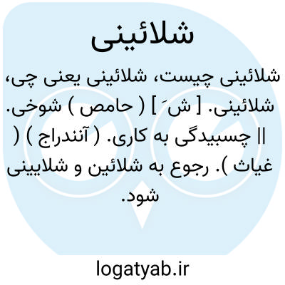 شلائینی. [ ش َ ] ( حامص ) شوخی. || چسبیدگی به کاری. ( آنندراج ) ( غیاث ). رجوع به شلائین و شلایینی شود.