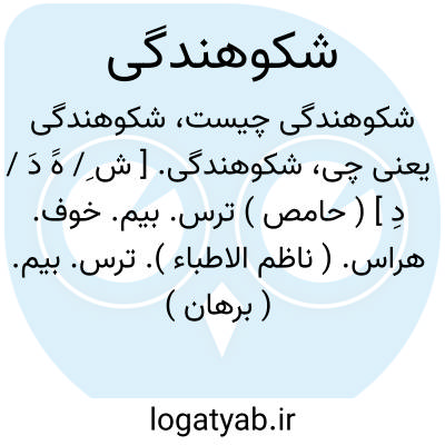 شکوهندگی. [ ش ِ/ هََ دَ / دِ ] ( حامص ) ترس. بیم. خوف. هراس. ( ناظم الاطباء ). ترس. بیم. ( برهان ) ( آنندراج ):
