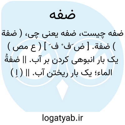 ضفة. [ ض ِف ْ ف َ ] ( ع اِ ) کرانه جوی ( بفتح اول نیز آمده ). کرانه چاه ( بفتح اول نیز آمده ). کناره رودبار. ( منتهی الارب ).