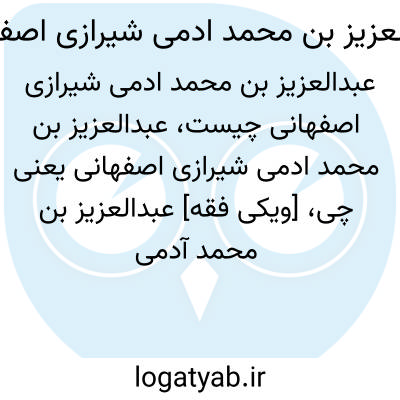 [ویکی فقه] عبدالعزیز بن محمد آدمی شیرازی اصفهانی. عبدالعزیز بن محمد آدمی شیرازی اصفهانی، از محدّثین و علمای قرن ششم هجری و ساکن شیراز بوده است.