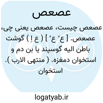 عصعص. [ ع ُ ص َ ع ِ / ع َ ع َ ] ( ع اِ ) عُصعُص است به معنی استخوان دنب. ( از اقرب الموارد ) ( از منتهی الارب ). رجوع به عُصعص شود.