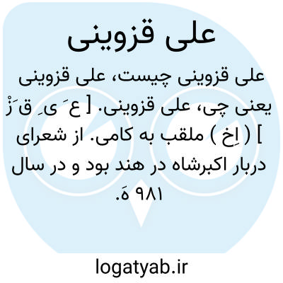 علی قزوینی. [ ع َ ی ِ ق َزْ ] ( اِخ ) ملقب به کامی. از شعرای دربار اکبرشاه در هند بود و در سال 981 هَ. ق. درگذشت او راست: نفائس المآثر، که تذکرةالشعرا است. ( از هدیة العارفین بغدادی ج 1 ص 749 ).