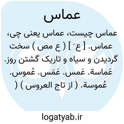عماس. [ ع َ ] ( ع مص ) سخت گردیدن و سیاه و تاریک گشتن روز. عَماسة. عَمس. عَمَس. عُموس. عُموسة. ( از تاج العروس ) ( از متن اللغة ). رجوع به عماسة، عمس، عموس و عموسة شود. || ( ص ) جنگ سخت. ( منتهی الارب ) ( ناظم الاطباء ) ( از تاج العروس ) ( از اقرب الموارد ) ( از متن اللغة ). حرب عماس؛ جنگ شدید و سخت. ( از لسان العرب ). || روز تاریک. ( منتهی الارب ) ( ناظم الاطباء ) ( از تاج العروس ). یوم عماس؛ روز تاریک. ( از لسان العرب ). || شب نیک تاریک. ( منتهی الارب ) ( ناظم الاطباء ) ( از تاج العروس ) ( از متن اللغة ) ( از اقرب الموارد ). لیلة عماس؛ شب تاریک. ( از لسان العرب ). || کار دشوار بی سروپای. ( از منتهی الارب ). کار دشوار بی سروته. ( ناظم الاطباء ). امر عماس؛ کار دشوار و تاریک که ندانند از کجا راه بدان برند. ( از لسان العرب ) ( از تاج العروس ) ( از اقرب الموارد ) ( از متن اللغة ). عَمس. عموس. مُعمَّس. ( لسان العرب ) ( تاج العروس ). رجوع به عموس و معمس شود. || هرچه بدان راهی نباشد. ( از لسان العرب ) ( از تاج العروس ) ( از متن اللغة ). ج، عُمس، عُمُس. ( تاج العروس ) ( منتهی الارب ) ( ناظم الاطباء ) ( متن اللغة ) ( اقرب الموارد ). || شیر بیشه درشت اندام. ( منتهی الارب ) ( ناظم الاطباء ). اسد عماس؛شیر سخت و شدید. ( از لسان العرب ) ( از اقرب الموارد ) ( از متن اللغة ). || داهیه و زیرک. ( از تاج العروس ) ( از اقرب الموارد ) ( از متن اللغة ). || ( اِ ) بلا و سختی. ( منتهی الارب ) ( ناظم الاطباء ).