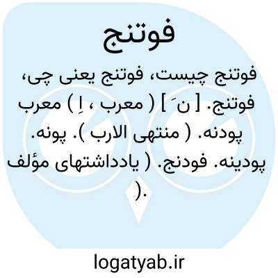 فوتنج. [ ن َ ] ( معرب، اِ ) معرب پودنه. ( منتهی الارب ). پونه. پودینه. فودنج. ( یادداشتهای مؤلف ). پودنه است که نوعی از نعنا باشد، و به عربی حبق خوانند، و آن چند قسم میشود، قسمی که در میان جوی آب میروید آن را حبق التمساح و حبق الماء گویند. ( برهان ). رجوع به فودنج شود.