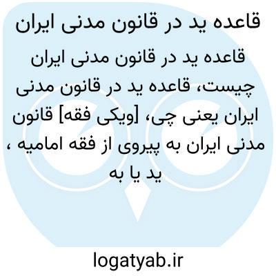 [ویکی فقه] قانون مدنی ایران به پیروی از فقه امامیه، ید یا به اصطلاح خودش « تصرف » را اماره مالکیت شناخته و آن را در اعیان و منافع و حقوق جاری دانسته است.