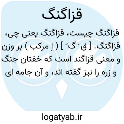 قزاگنگ. [ ق َ گ َ ] ( اِ مرکب ) بر وزن و معنی قزاگند است که خفتان جنگ و زره را نیز گفته اند، و آن جامه ای باشد که از حلقه های آهن ترتیب داده در روز جنگ پوشند. ( برهان ). رجوع به قزاغند و قزاکند شود.