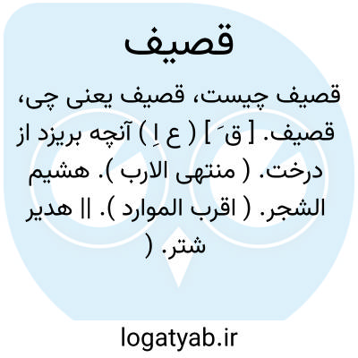 قصیف. [ ق َ ] ( ع اِ ) آنچه بریزد از درخت. ( منتهی الارب ). هشیم الشجر. ( اقرب الموارد ). || هدیر شتر. ( منتهی الارب ). بانگ شتر. || ( ص ) به دو نیمه شکسته. ( اقرب الموارد ) ( منتهی الارب ). || ثوب قصیف؛ جامه ای که عرض ندارد. ( اقرب الموارد ). || رجل قصیف البطن؛ به معنی قصف البطن است. ( منتهی الارب ). رجوع به قصف البطن شود. || و البردی اذا طال یقال له القصیف.