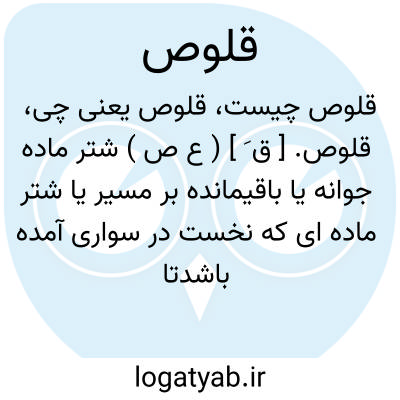 قلوص. [ ق َ ] ( ع ص ) شتر ماده جوانه یا باقیمانده بر مسیر یا شتر ماده ای که نخست در سواری آمده باشدتا آنکه به شش سالگی درآید پس ناقه گردد. || شترماده بلند درازدست. || ( اِ ) شترمرغ ماده. || بچه ماده آن. ( منتهی الارب ) ( اقرب الموارد ). || جوی آب جاری که در آن خاکروبه و کثافات ریزند و مردم شام آن را فلوط خوانند.( اقرب الموارد ). || چوزه شوات. ( منتهی الارب ). || کنایه از دختر جوان. ( منتهی الارب )( اقرب الموارد ). || کنیزک. جاریة. فتیه: فأخذ مما اخذ قلوصاً من فتی من کنده. ( معجم البلدن چ مصر در شرح کلمه حضرموت ص 249 ). ج، قلائص، قُلُص ( منتهی الارب ) ( اقرب الموارد )، قِلاص. ( اقرب الموارد ).