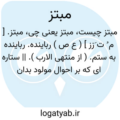 مبتز. [ م ُ ت َزز ] ( ع ص ) رباینده. رباینده به ستم. ( از منتهی الارب ). || ستاره ای که بر احوال مولود بدان استدلال کنند. ( منتهی الارب ) ( از ناظم الاطباء ). در اصطلاح نجوم کوکب صاحب ابتزاز. ( یادداشت به خط مرحوم دهخدا ): مبتز چیره بود و بر دوگونه آید: یکی مطلق و این آن است که قویترین کوکبی باشد اندر وقت و بسیارترین شهادتها اندرجای خویش به فلک و ستارگان و حالها که از افق اوفتد. و دیگر گونه مقید بود و این آن است که هم قوی و خوب حال بود و شهادتهای او بر یک چیزی باشد ازآن چیزها که اندردوازده خانه اند. ( التفهیم ص 484 ).
