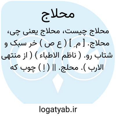 محلاج. [ م ِ ] ( ع ص ) خر سبک و شتاب رو. ( ناظم الاطباء ) ( از منتهی الارب ). محلج. || ( اِ ) چوب که بدان نان را پهن و مدور سازند. ( منتهی الارب ).وردنه و چوبی که بدان نان را پهن و گرد کنند. ( ناظم الاطباء ). || آهن حلاجی. ( منتهی الارب ). || ابزاری آهنین که بدان پنبه را از پنبه دانه جدا کنند. ( ناظم الاطباء ). درونه. فلخمه. کمان حلاج. ج، محالج، محالیج: فلخم؛ محلاج ندافان بود. ( اسدی ).