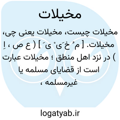 ( اسم ) ۱- جمع مخیله ( مخیل ). ۲- قضایا و مقدماتی هستند که نفس را بجنبانند تا بر چیزی حرص آرد یا از چیزی نفرت گیرد و باشد که نفس داند که دروغند. در دستور آمده: مخیلات عبارت از قضایایی هستند که در نفس اثر شگفت آوری گذاشته و موجب قبض و بسط شوند و قیاسی را که مرکب از مخیلات است شعر نامند.