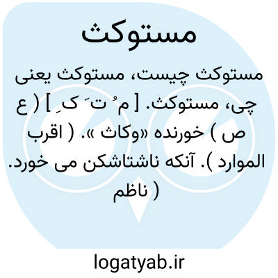 مستوکث. [ م ُ ت َ ک ِ ] ( ع ص ) خورنده «وکاث ». ( اقرب الموارد ). آنکه ناشتاشکن می خورد. ( ناظم الاطباء ). و رجوع به استیکاث و وکاث شود.