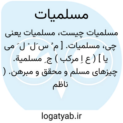 مسلمیات. [ م ُ س َل ْ ل َ می یا ] ( ع اِ مرکب ) ج ِ مسلمیة. چیزهای مسلم و محقق و مبرهن. ( ناظم الاطباء ).مسلمات. || ( اصطلاح منطق ) مسلمیات یا مسلمات آن مقدمه هائی بود که چون خصم تسلیم کند بر وی به کار داری خواهی حق یا مشهور یا مقبول باش و خواهی مباش. ( دانشنامه بخش منطق ص 124 از فرهنگ علوم عقلی ). و رجوع به مسلمات شود. || بخشودگیهای مالیاتی: به همین دستور اگر اقطاع و سیورغال ومسلمیات و معافیات و مدد معاش و پروانه جات حسابی که صادر گردد عمل مینمایند... ( تذکرة الملوک ص 44 ). ازانعام امراء و جمعی که ملازم نباشند و سیورغالات و معافی و مواجب و مسلمیات و حق السعی عمال هفتصدوچهارده دینار. ( تذکرة الملوک ص 52 ). و رجوع به مسلمی شود.