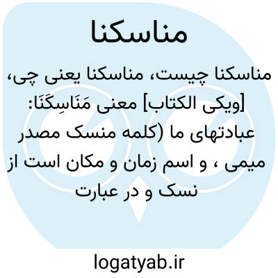 [ویکی الکتاب] معنی مَنَاسِکَنَا: عبادتهای ما (کلمه منسک مصدر میمی، و اسم زمان و مکان است از نسک و در عبارت "فَإِذَا قَضَیْتُم مَّنَاسِکَکُمْ فَـﭑذْکُرُواْ ﭐللَّهَ " مصدر میمی و به معنای عبادت است، عبادتی که مشتمل بر قربانی و ذبح هم هست )