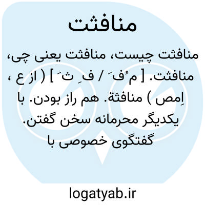 منافثة. [ م ُ ف َ ث َ ] ( ع مص ) زیرگوشی گفتن با دیگری. ( ناظم الاطباء ) ( از اقرب الموارد ). رجوع به منافثت شود.