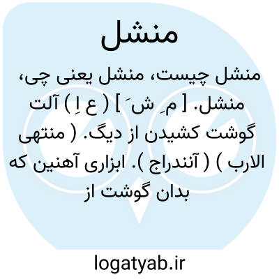 منشل. [ م ِ ش َ ] ( ع اِ ) آلت گوشت کشیدن از دیگ. ( منتهی الارب ) ( آنندراج ). ابزاری آهنین که بدان گوشت از دیگ برمی کشند. ( ناظم الاطباء ). مِنشال. ج، مناشل. ( اقرب الموارد ). رجوع به منشال شود.