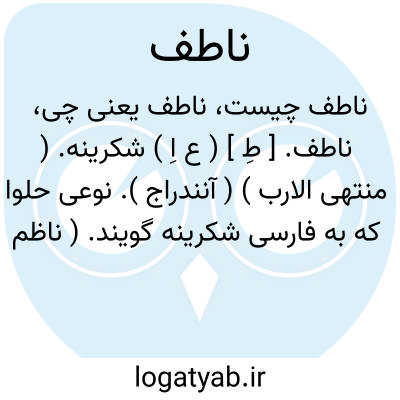 ناطف. [ طِ ] ( ع اِ ) شکرینه. ( منتهی الارب ) ( آنندراج ). نوعی حلوا که به فارسی شکرینه گویند. ( ناظم الاطباء ). نوعی حلواست که قبیطی نامیده می شود. ( از معجم متن اللغة ). نام عام بسیاری از حلواهاست از آن جمله است شکرپنیر و حلواسورون و حلوای مغزیات. ( فرهنگ نظام ). کبیتا. ( فرهنگ اسدی ). حلوای مغزین. ( دهار ). و قبیطار اعرب ناطف به آن معنی گوید که پیش از آنکه قوام او به قوام عسل شود او متقاطر بود. ( تاج المصادر بیهقی ) قبیطه. قبیطی. قبیطا. قباط. شکرینه. ابوالقوام: از بیلقان پرده های بسیار و جل و برقع و ناطف خیزد. ( حدود العالم ). کودکی طواف بر در خانقاه بگذشت و ناطف آوازمی داد. ( اسرار التوحید ). از خائیدن حلواهاء غلیظ چون ناطف و غیر آن پرهیز کند. ( ذخیره خوارزمشاهی ).