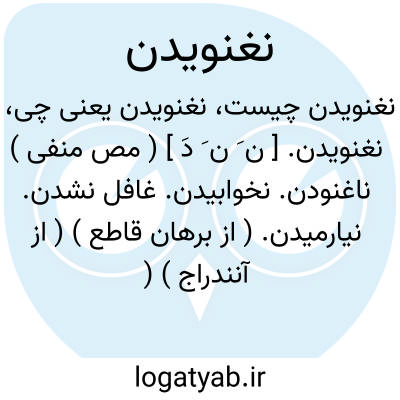 لغت نامه دهخدا نغنویدن. [ ن َ ن َ دَ ] ( مص منفی ) ناغنودن. نخوابیدن. غافل نشدن. نیارمیدن. ( از برهان قاطع ) ( از آنندراج ) ( ناظم الاطباء ). مقابل غنویدن. رجوع به غنویدن و غنودن شود.