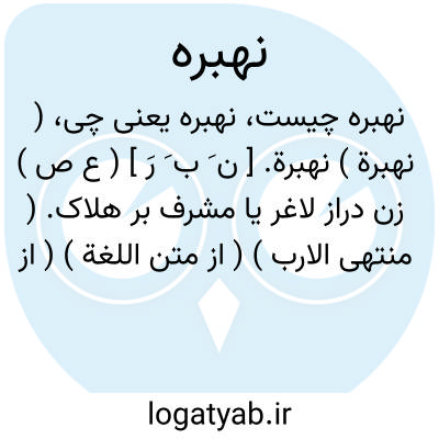 ( نهبرة ) نهبرة. [ ن َ ب َ رَ ] ( ع ص ) زن دراز لاغر یا مشرف بر هلاک. ( منتهی الارب ) ( از متن اللغة ) ( از اقرب الموارد ).