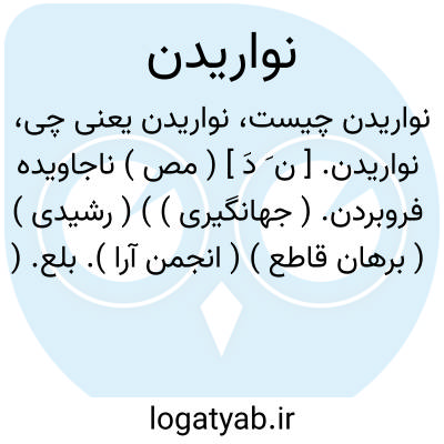 نواریدن. [ ن َ دَ ] ( مص ) ناجاویده فروبردن. ( جهانگیری ) ) ( رشیدی ) ( برهان قاطع ) ( انجمن آرا ). بلع. ( جهانگیری ) ( انجمن آرا ) ( برهان ) ( آنندراج ). بلع کردن. ( ناظم الاطباء ). آن را اوباریدن نیز گویند.( جهانگیری ). نواریدن ظاهراً صورت منفی «واریدن » است به معنی «فاریدن ». امام بیهقی در تاج المصادر لغت «سرط» و «لقف » عربی را به «فروواریدن » ترجمه کرده است و از همین ریشه است «اوباردن ». سرط و لقف به معنی بلع است. ( از حاشیه برهان قاطع چ معین ):