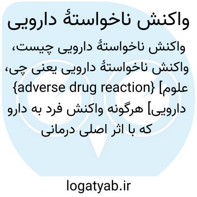 {adverse drug reaction} [علوم دارویی] هرگونه واکنش فرد به دارو که با اثر اصلی درمانی آن دارو متفاوت باشد اختـ. واناد ADR متـ. اثر ناخواستۀ دارویی adverse drug effect