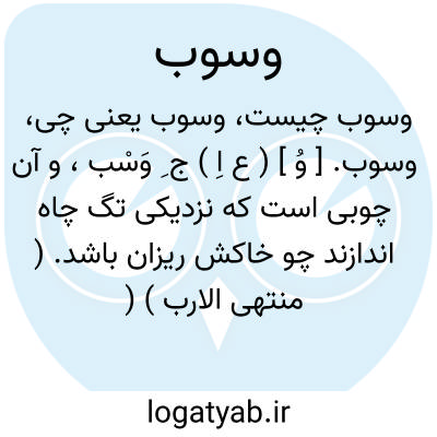وسوب. [ وُ ] ( ع اِ ) ج ِ وَسْب، و آن چوبی است که نزدیکی تگ چاه اندازند چو خاکش ریزان باشد. ( منتهی الارب ) ( از اقرب الموارد ). رجوع به وسب شود.
