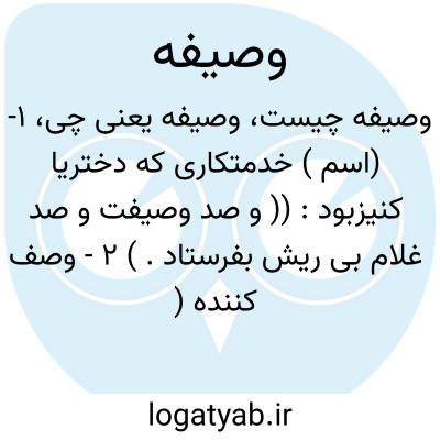 ۱- (اسم ) خدمتکاری که دختریا کنیزبود: (( و صد وصیفت و صد غلام بی ریش بفرستاد. ) ۲ - وصف کننده ( مونث ) جمع: وصائف.