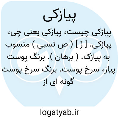 پیازکی. [ زَ ] ( ص نسبی ) منسوب به پیازک. ( برهان ). برنگ پوست پیاز، سرخ پوست. برنگ سرخ پوست گونه ای از پیاز.