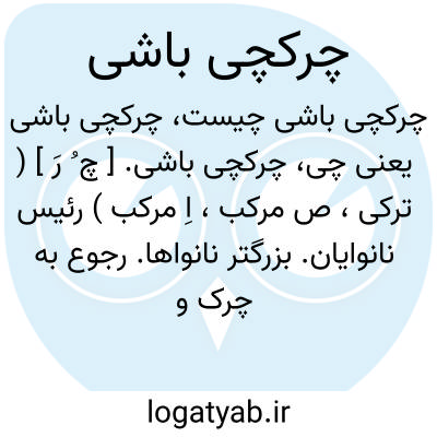چرکچی باشی. [ چ ُ رَ ] ( ترکی، ص مرکب، اِ مرکب ) رئیس نانوایان. بزرگتر نانواها. رجوع به چرک و چرکچی و چرکچی خانه شود.