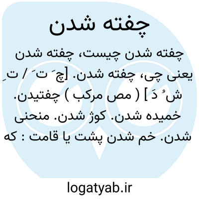 چفته شدن. [چ َ ت َ / ت ِ ش ُ دَ ] ( مص مرکب ) چفتیدن. خمیده شدن. کوژ شدن. منحنی شدن. خم شدن پشت یا قامت: