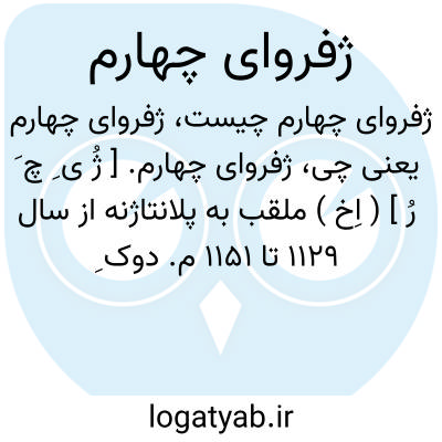 ژفروای چهارم. [ ژُ ی ِ چ َ رُ ] ( اِخ ) ملقب به پلانتاژنه از سال 1129 تا 1151 م. دوک ِ آنژو و بسال 1144 دوک ِ نُرماندی. وی داماد هانری اول و پدر هانری دوم پادشاه انگلستان است.